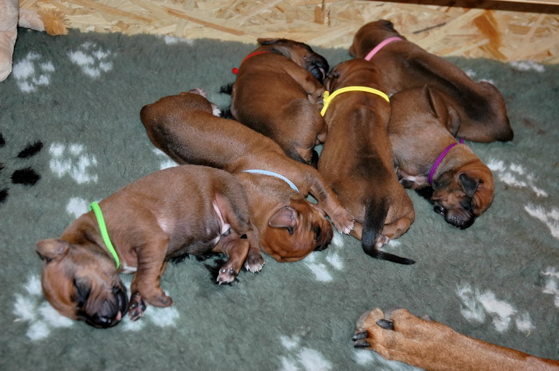 A máme tu další várku obrázků našich prcků z A vrhu. Štěňátka krásně přibývají na váze a každý den nás překvapují nečím novým.